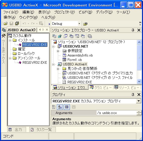 USBIO ActiveX 使用アプリケーション再配布するにはUSBIODemo.ocxの登録をREGSVR32.EXEなどで行わなければなりません。Microsoft Visual Studio .NETでの設定方法を説明します。